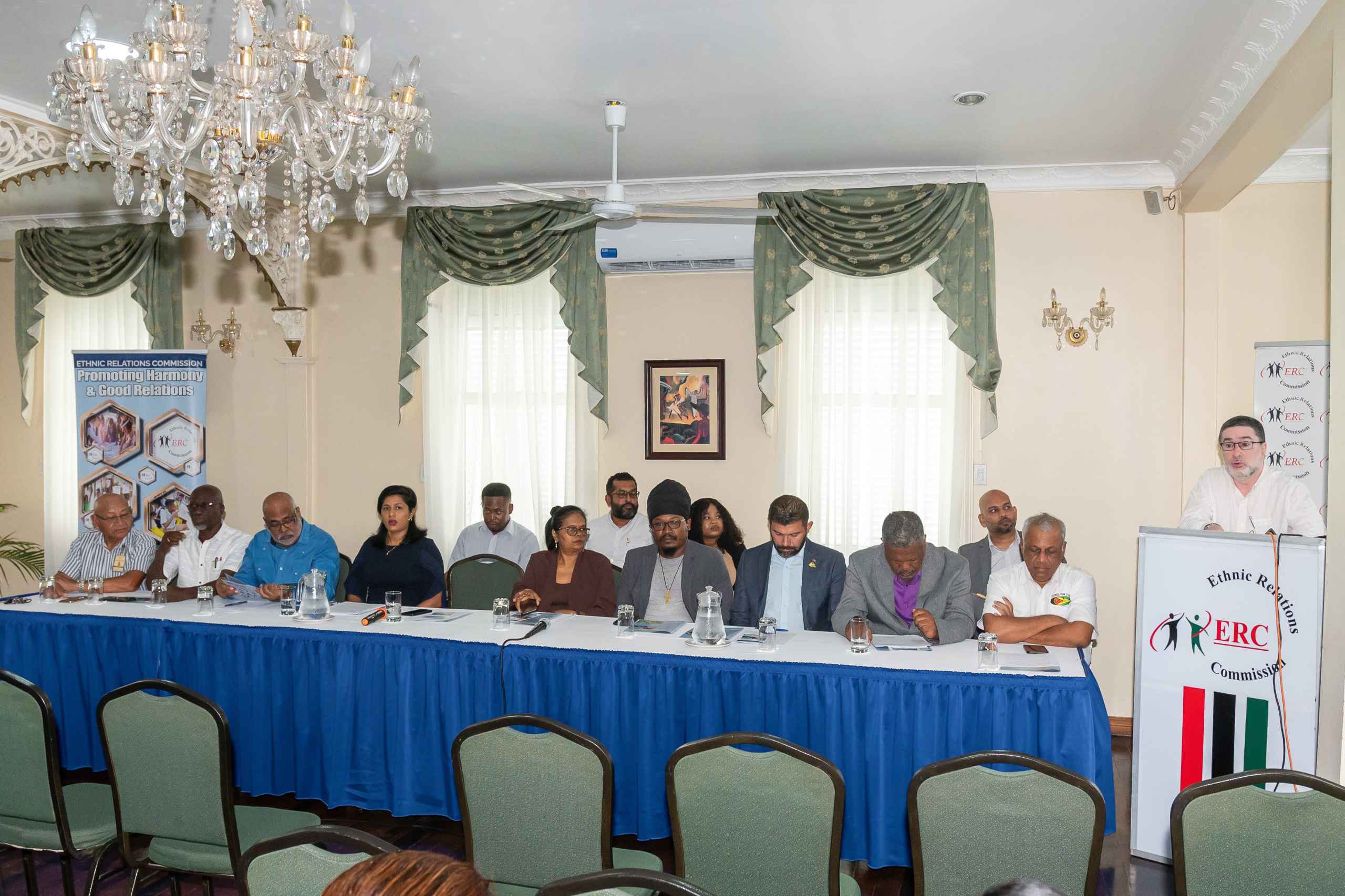 Ladies and gentlemen, esteemed members of the press, it is with great pleasure and pride that we are before you today as Commissioners of the Ethnic Relations Commission. As Chairman, it is my honour to present the official statement on behalf of the Commission with our main goal today being an update on the work and initiatives of the Commission as it marks one year since its reconstitution in March of 2023. The life of this Commission will run from 2023 to 2026.